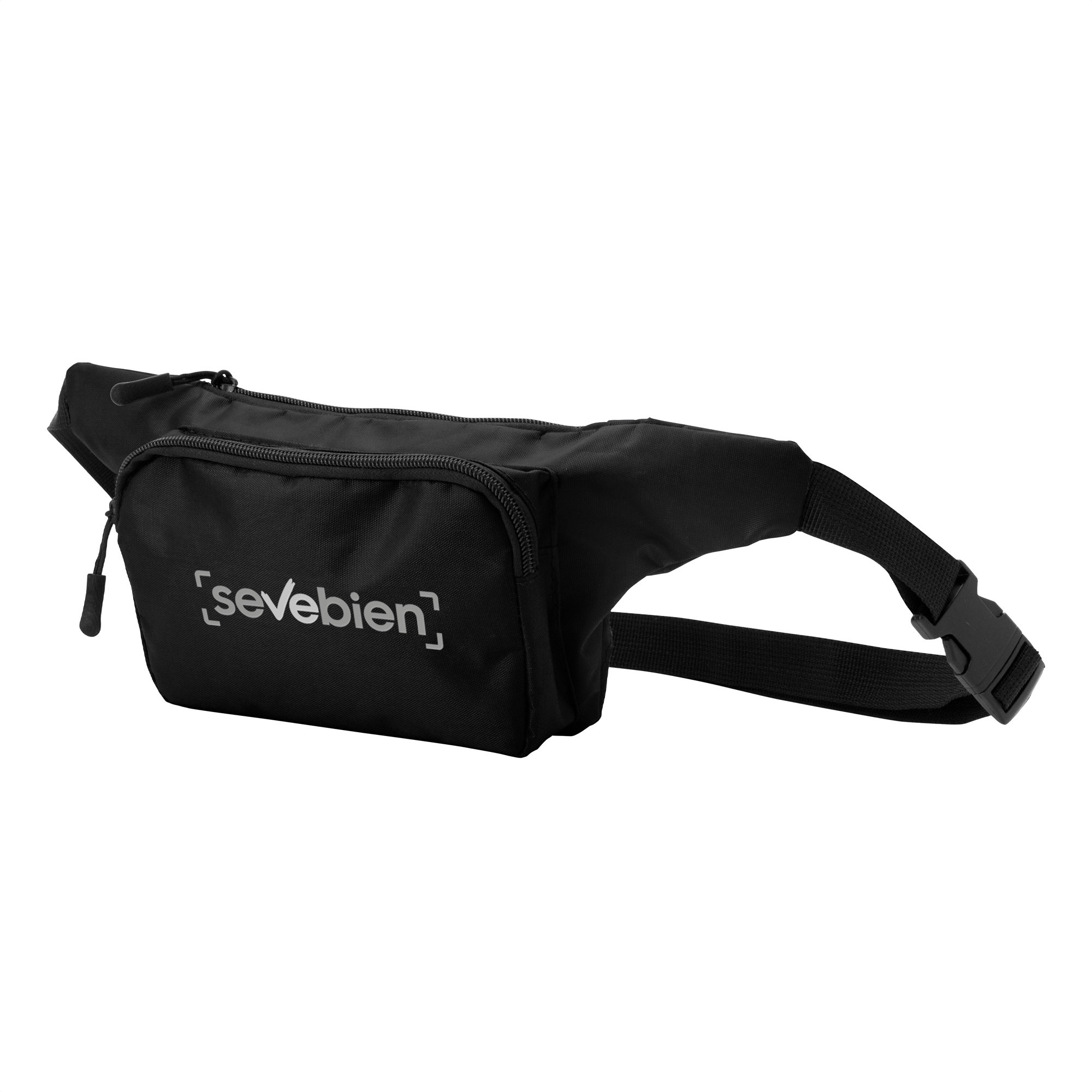 Comodidad en movimiento.Banano con 2 compartimentos con cierre. Amplio bolsillo frontal. Correa ajustable con herrajes plásticos. Cierres y tiradores de cierre plásticos de color negro.Medidas: 34 x 14 x 7,5 cm.