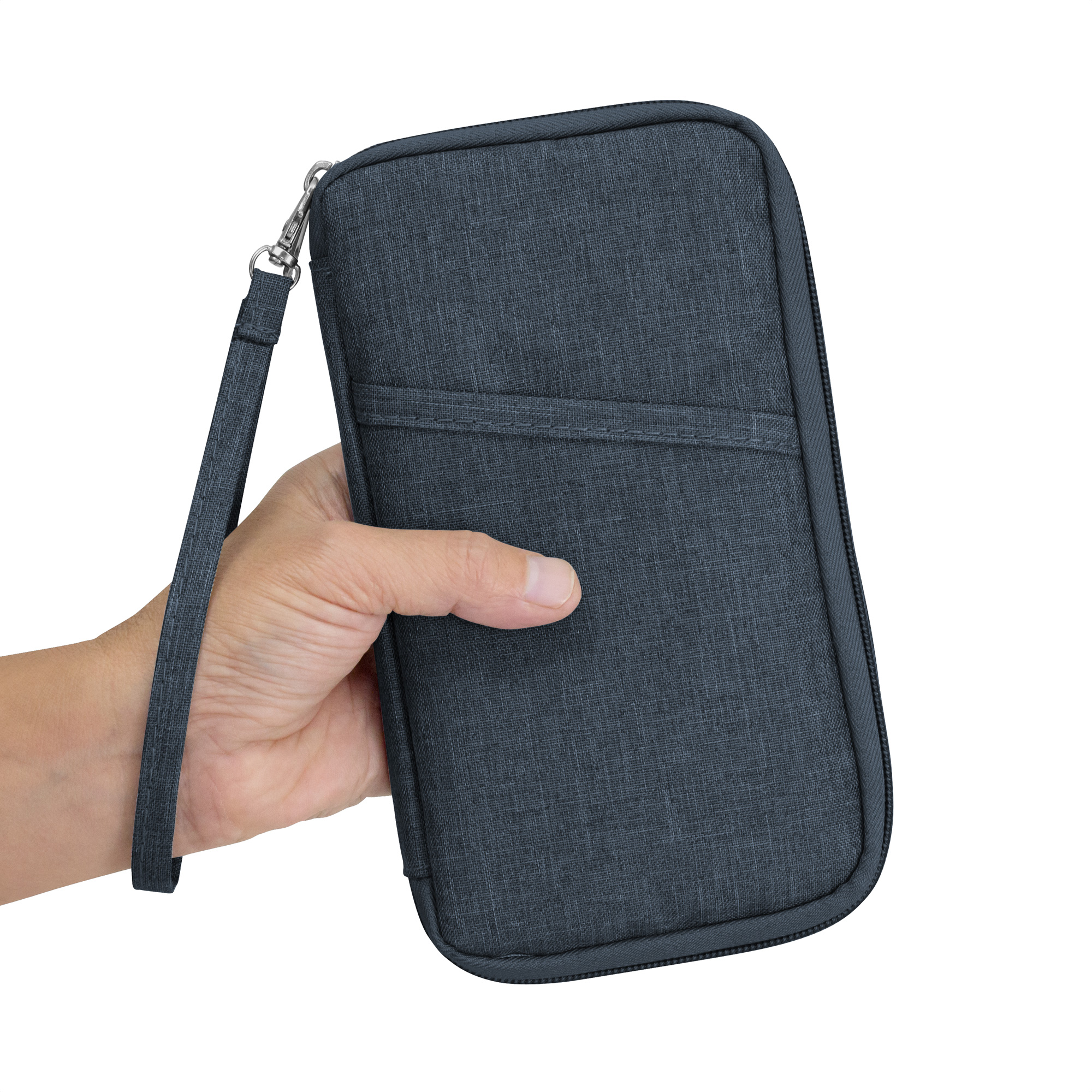 Compacta y con Múltiples CompartimentosBilletera portadocumentos. Estructura acolchada con cierre perimetral y un bolsillo al frente. Bolsillos internos de red de ambos lados con múltiples espacios organizadores y un bolsillo con cierre. Correa de poliéster desmontable con mosquetón. Tirador de cierre metálico.Medidas: 11 x 20 x 2 cm.