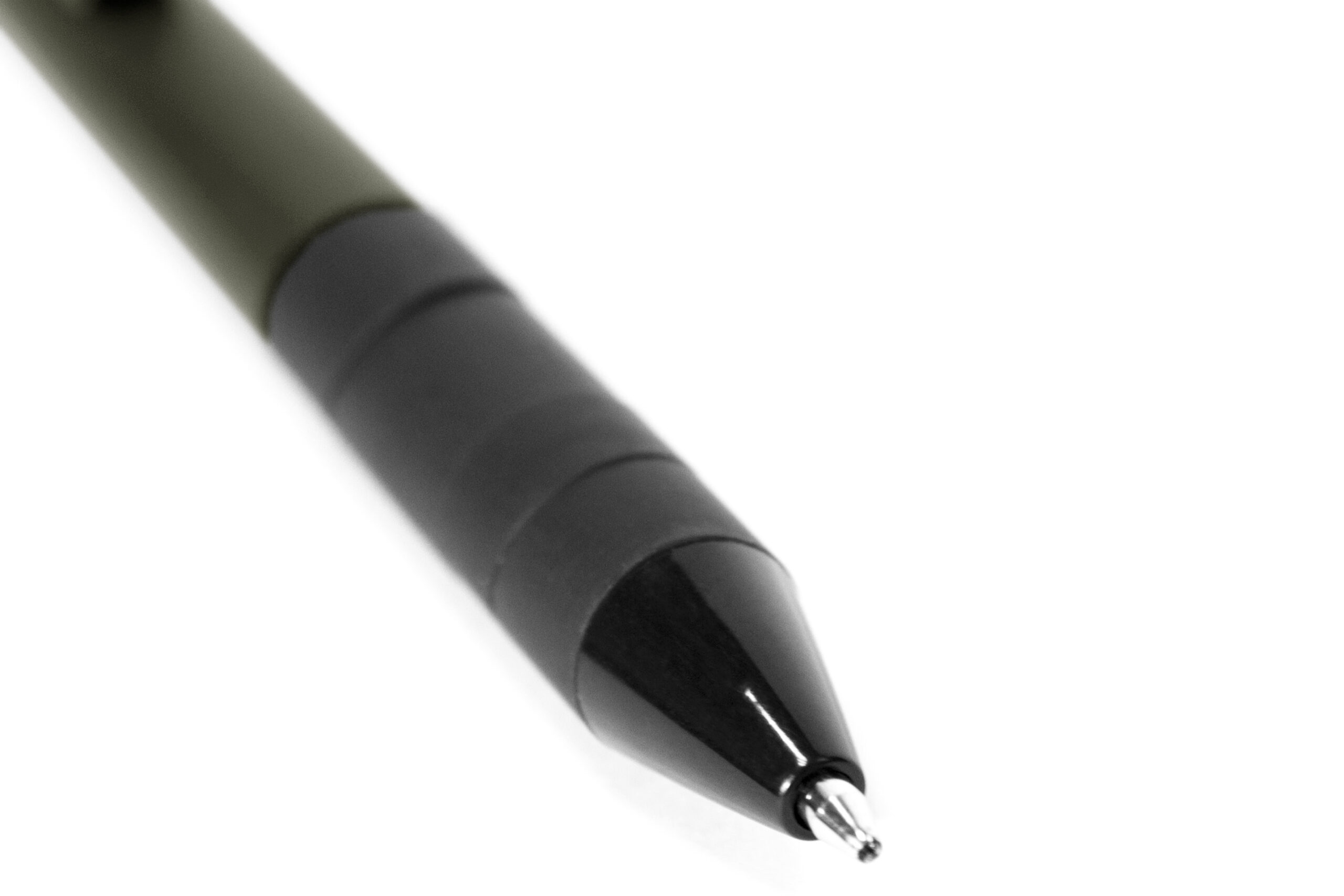 Metálico. Pulsador y puntera de plástico negro. Clip metálico en color negro. Grip de goma negro. Cuerpo de color. Tinta negra….