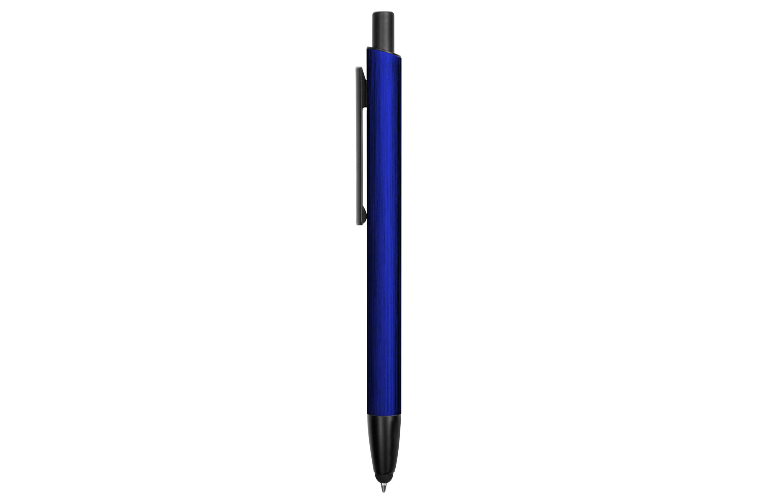 Aluminio. Cuerpo metálico. Clip, punta y pulsador plásticos. Punta touch. Tinta azul….