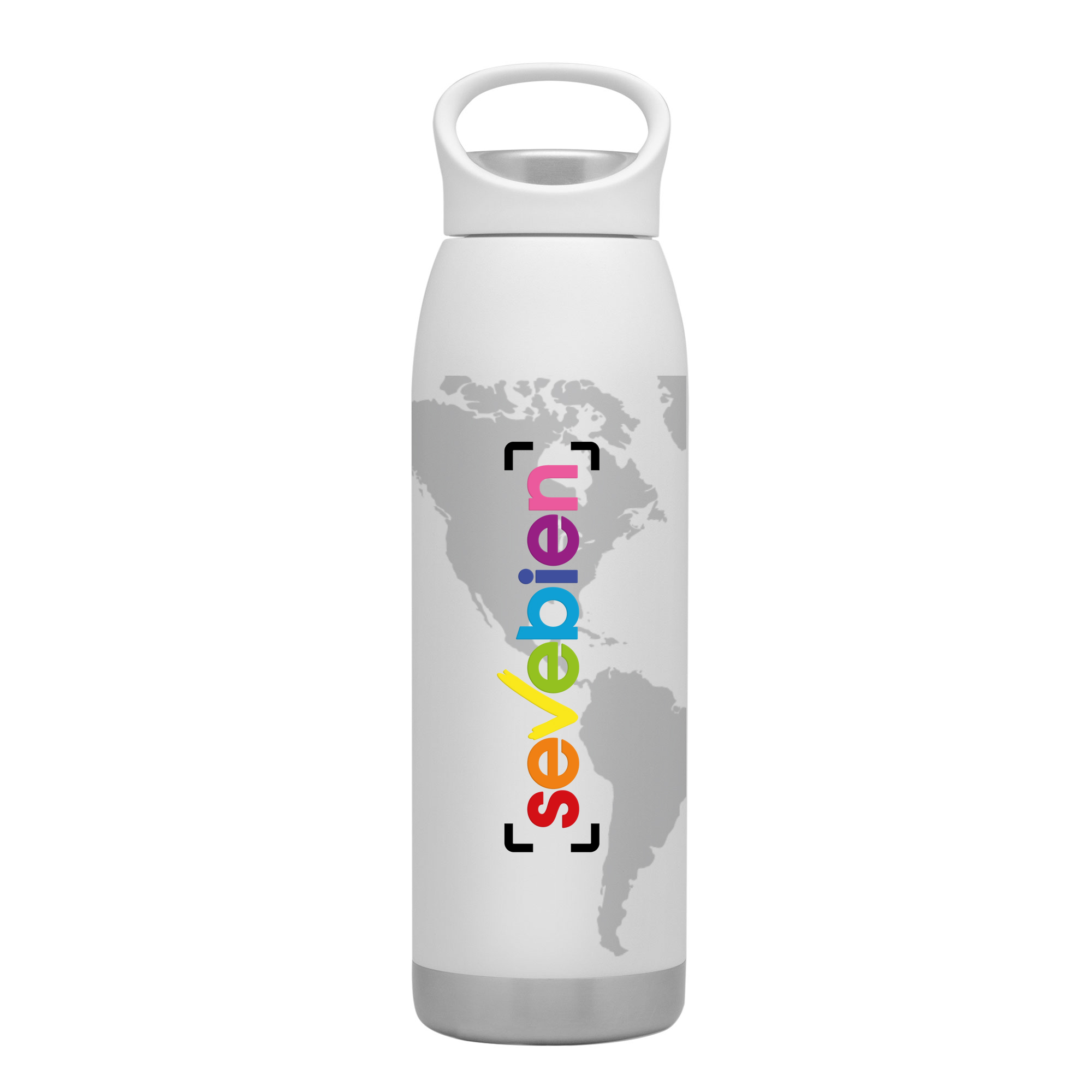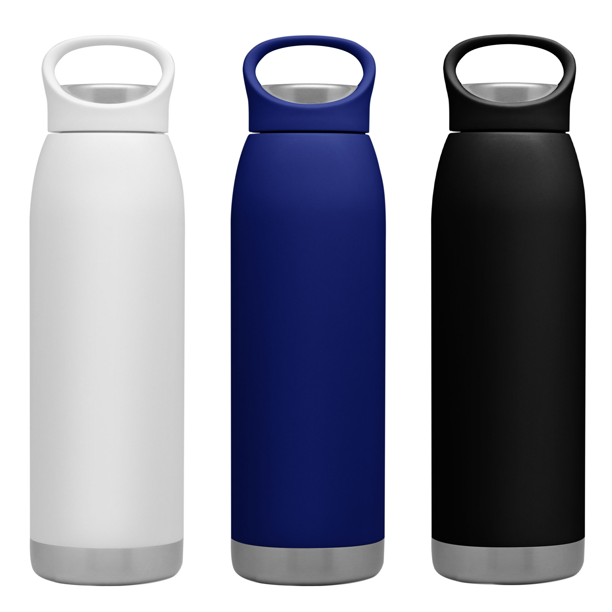 Ø 7,6 x 26,5 cm. Capacidad 600 ml. Acero inoxidable. Botella doble pared, sellada al vacío. Botella con aislamiento térmico. Tecnología vacuum.Interior en acero 304 y exterior en acero 201. Pintura en colores mate. Tapa combinada en plástico del mismo color de la botella y acero inoxidable 201. Mantiene hasta 12 hs la temperatura de las bebidas calientes y 24 hs de las bebidas frías. Presentación en caja de regalo.