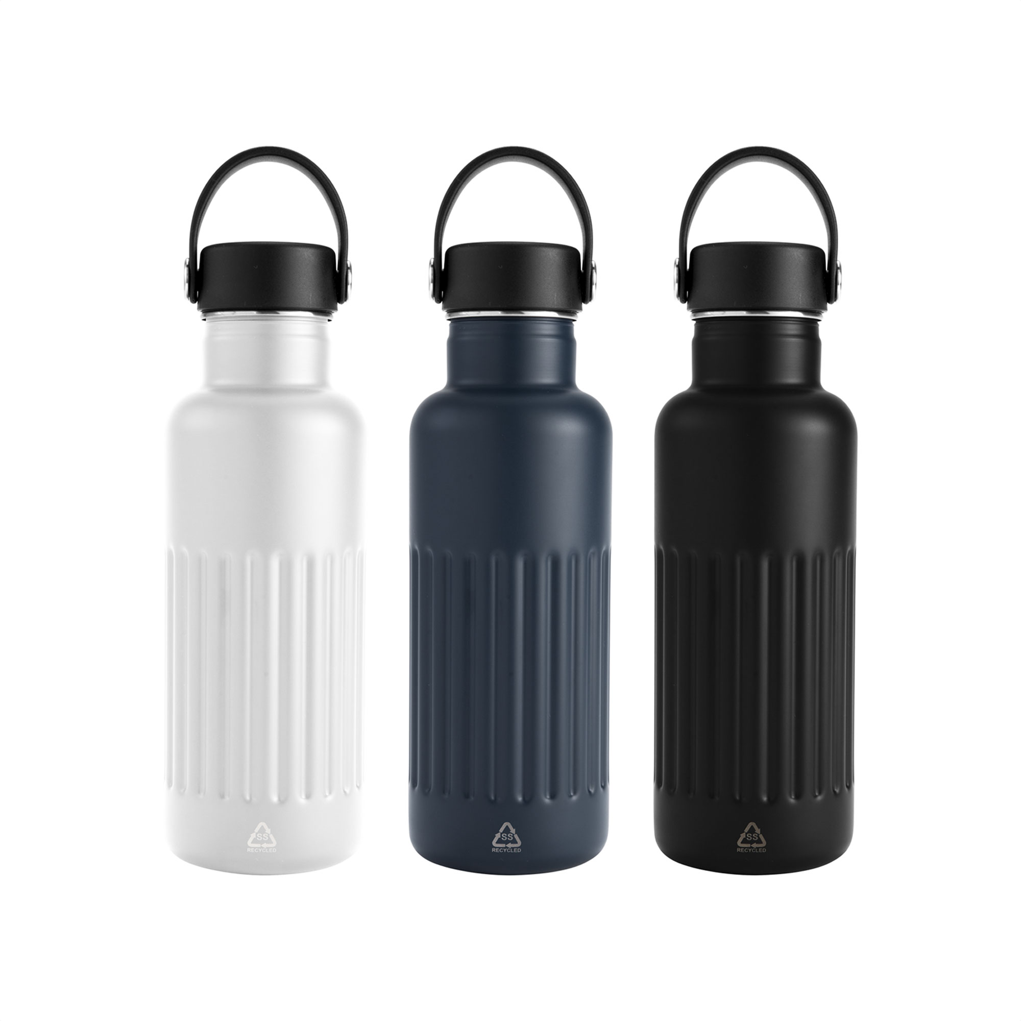 Resistente, pensada para el movimiento.Botella doble pared, sellada al vacío. Botella con aislamiento térmico. Tecnología vacuum. Interior de acero 304 reciclado y exterior de acero 201. Tapa a rosca de polipropileno, interior plástico. Asa reforzada de silicona. Pintura acabado semi mate. Cuerpo texturado para un mejor agarre. Mantiene hasta 12 hs la temperatura de las bebidas calientes y 24 hs de las bebidas frías. Medidas: Ø 7,5 x 22,5 cm.