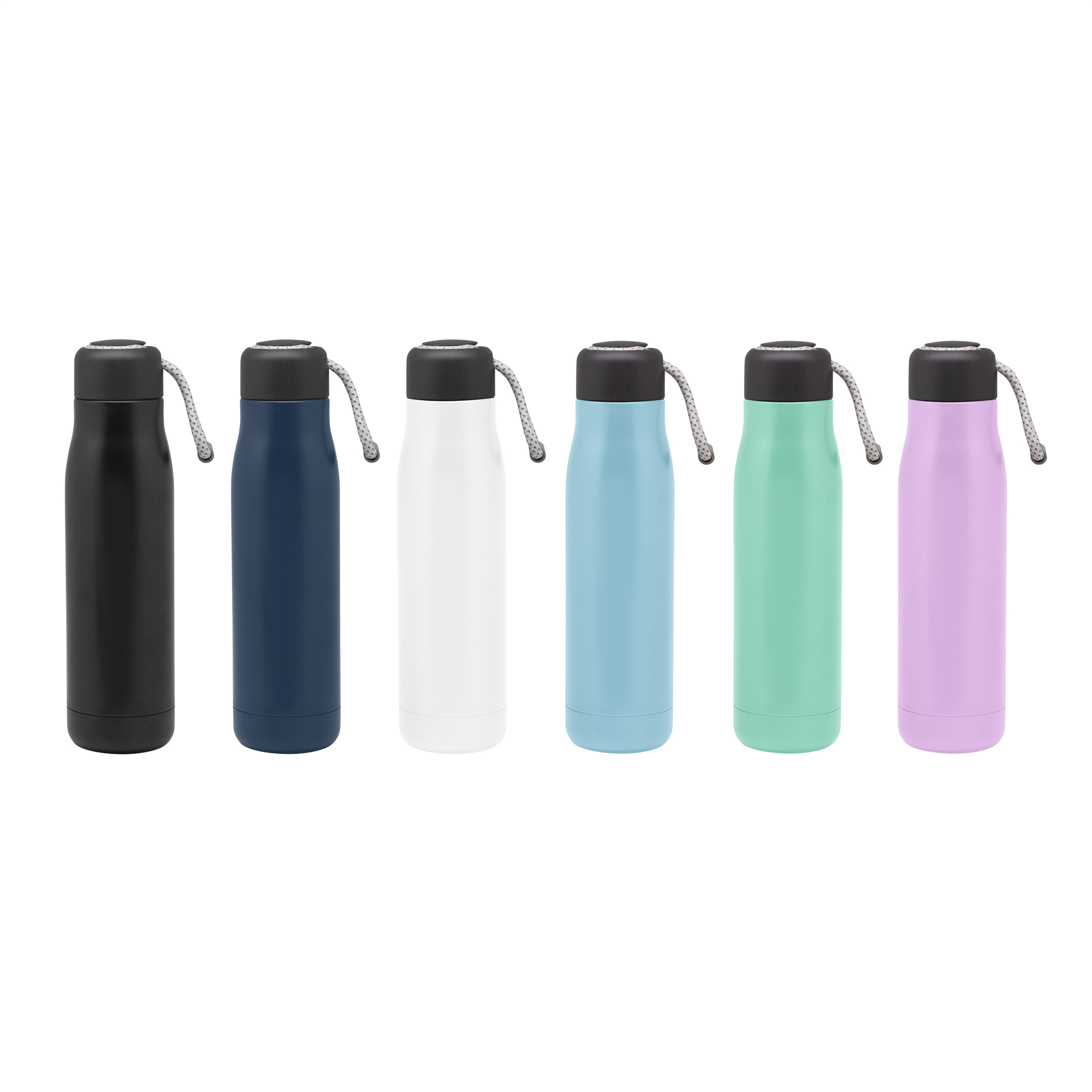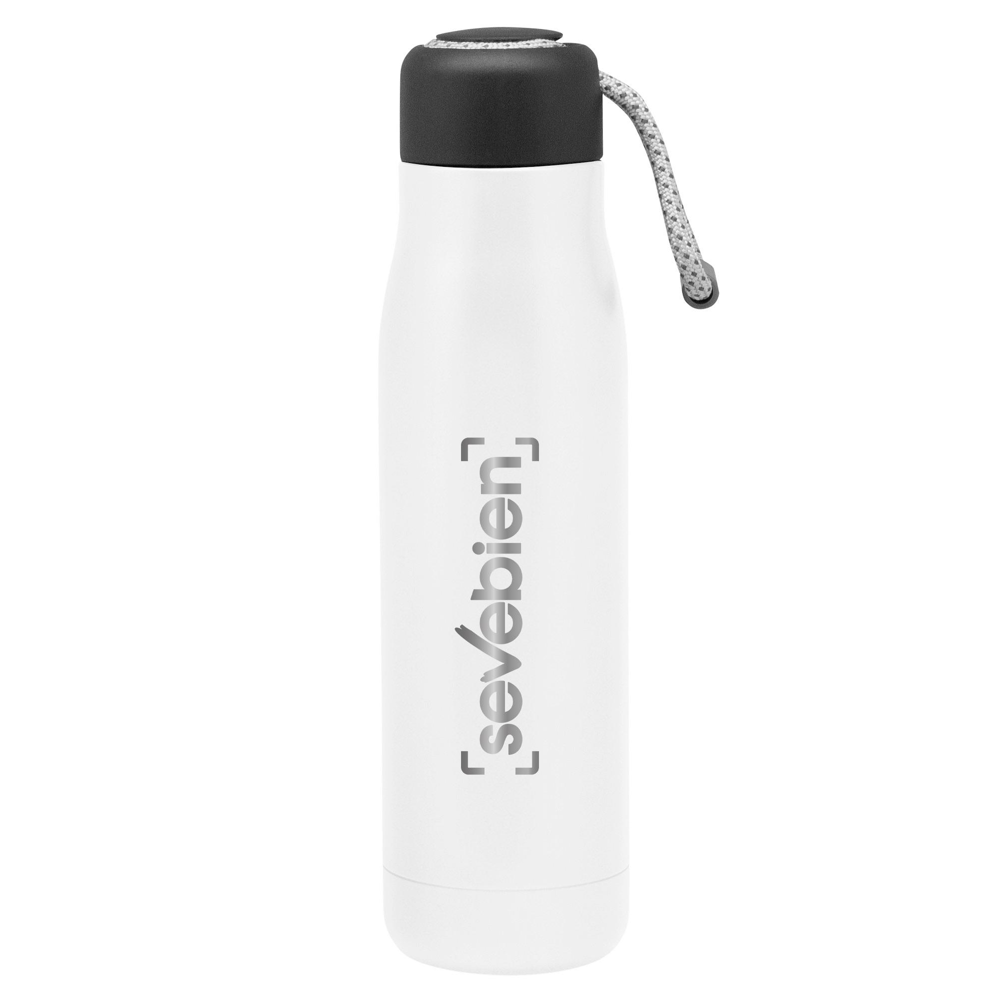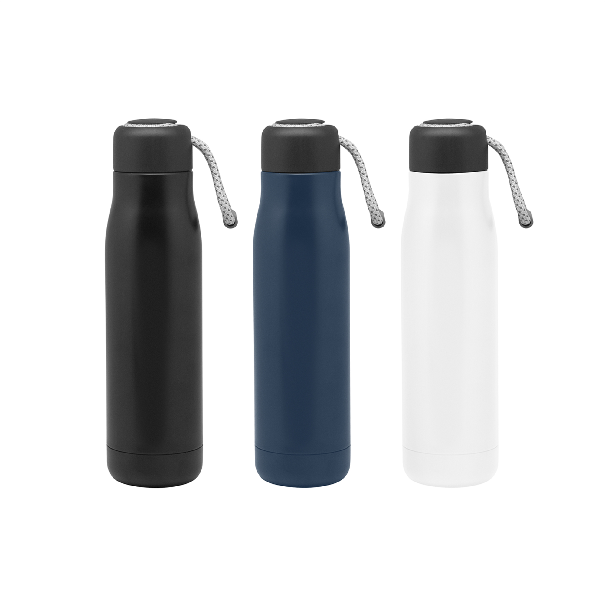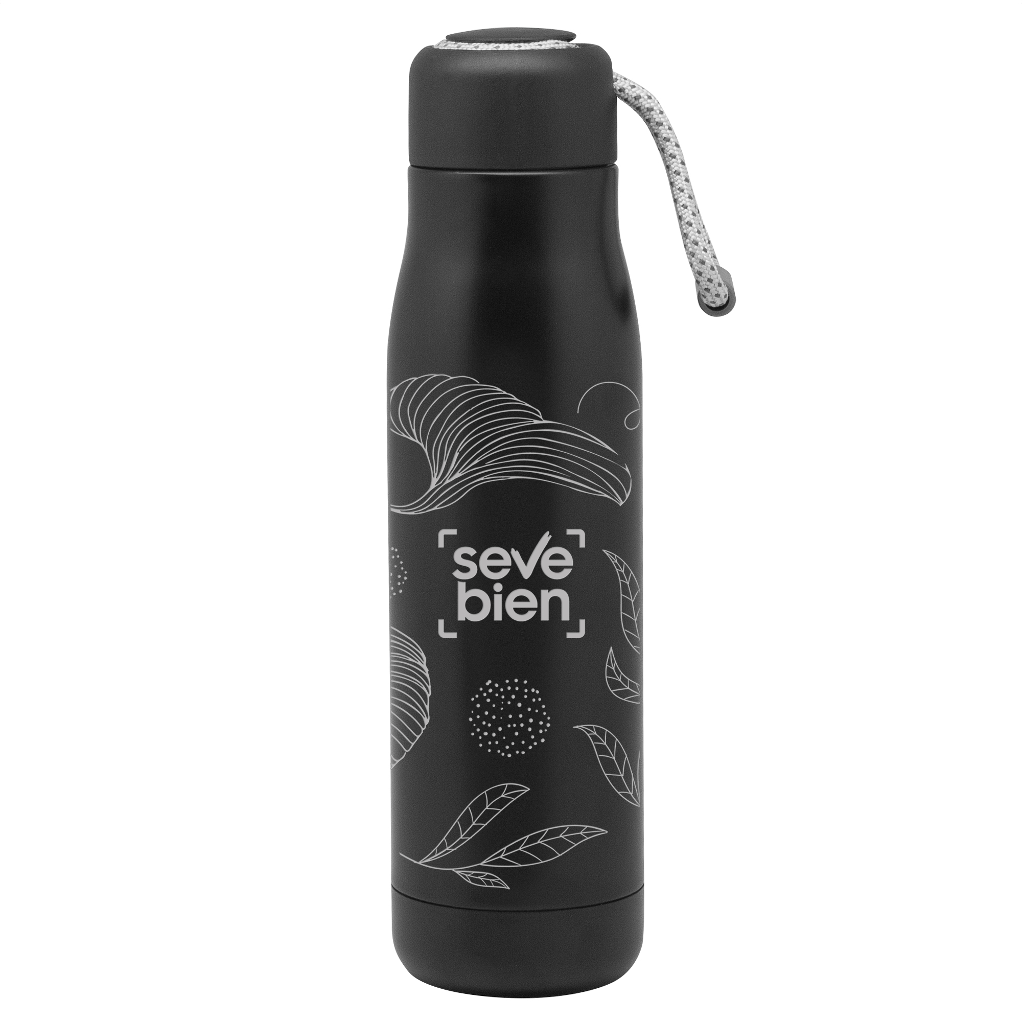 Lleva tus bebidas favoritas con la temperatura que te gusta.Botella doble pared, sellada al vacío. Interior de acero 304 y exterior de acero 201. Tapa plástica de polipropileno y anillo de silicona. Posee además tira de color gris de 12 cm de largo. Ideal para llevarla a todos lados. Mantiene hasta 12 hs la temperatura de las bebidas calientes y 24 hs de las bebidas frías. Medidas: Ø 7cm x 25.5 cm.
