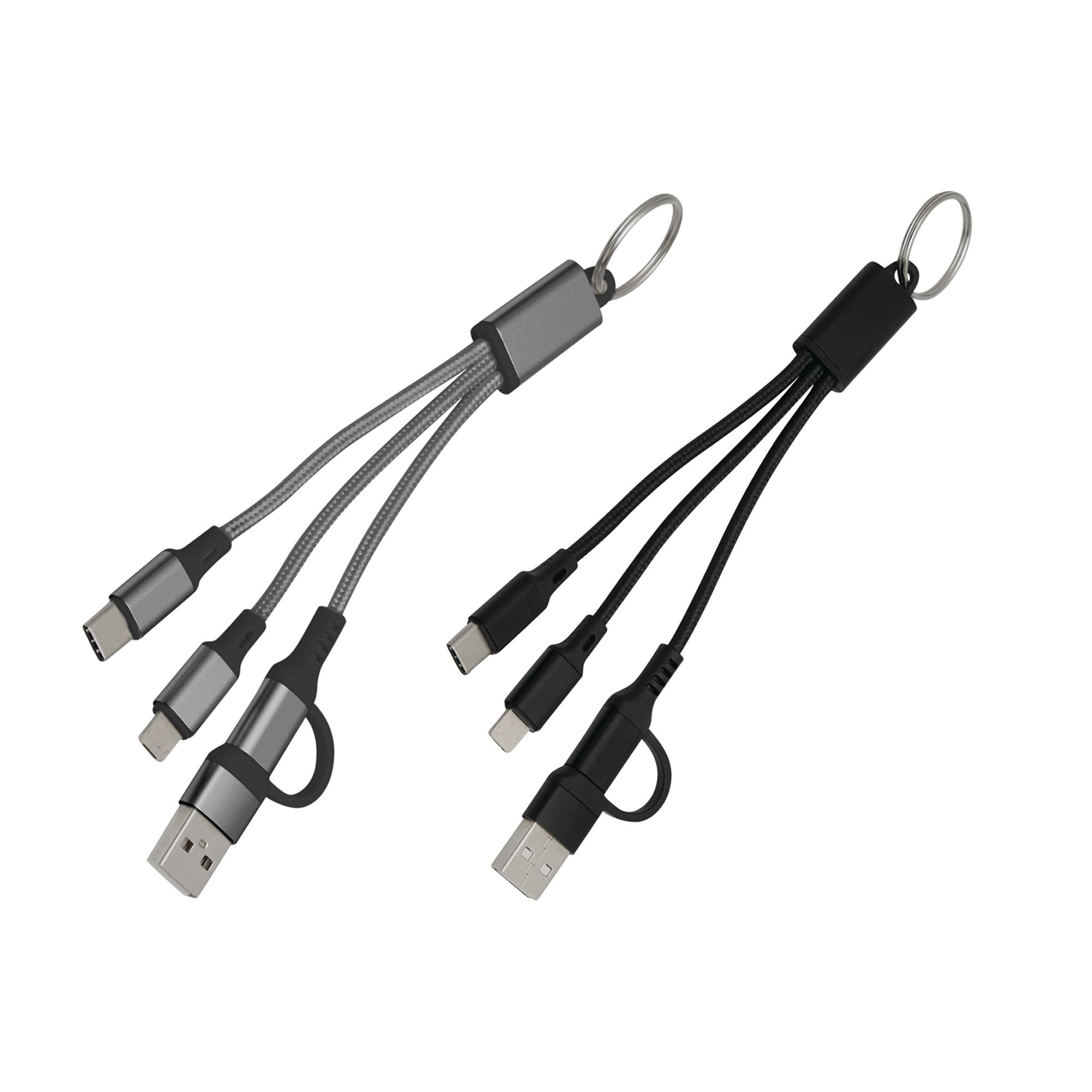 Todo lo que necesitas al alcance de tu manoCable de carga con llavero. Entrada: 2 en 1 (USB + USB tipo C). Salida: USB tipo C + lightning.Medidas: 15,5 cm.