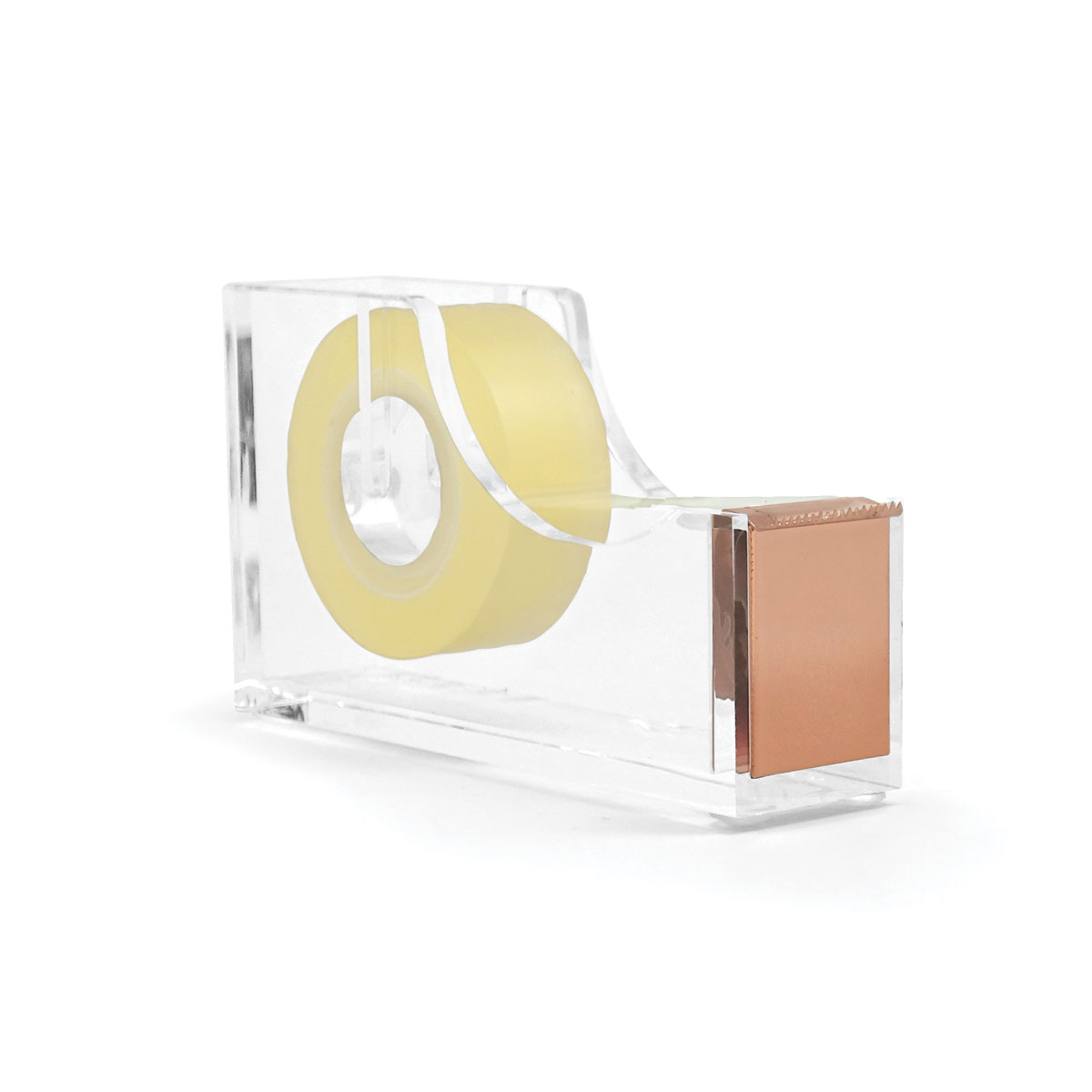 11,5 x 6,4 x 3 cm. Acrílico y metal rose gold. Dispensador de cinta adhesiva que combina diseño y funcionalidad para el día a día. Presentació…