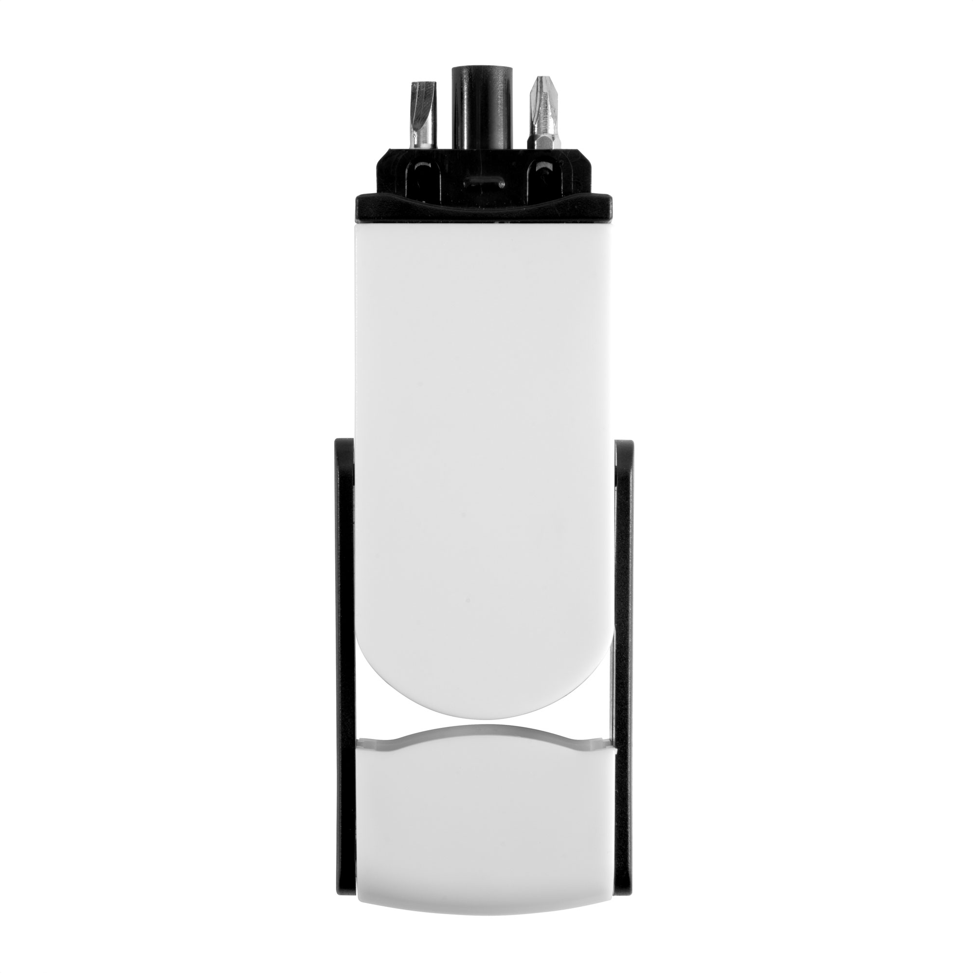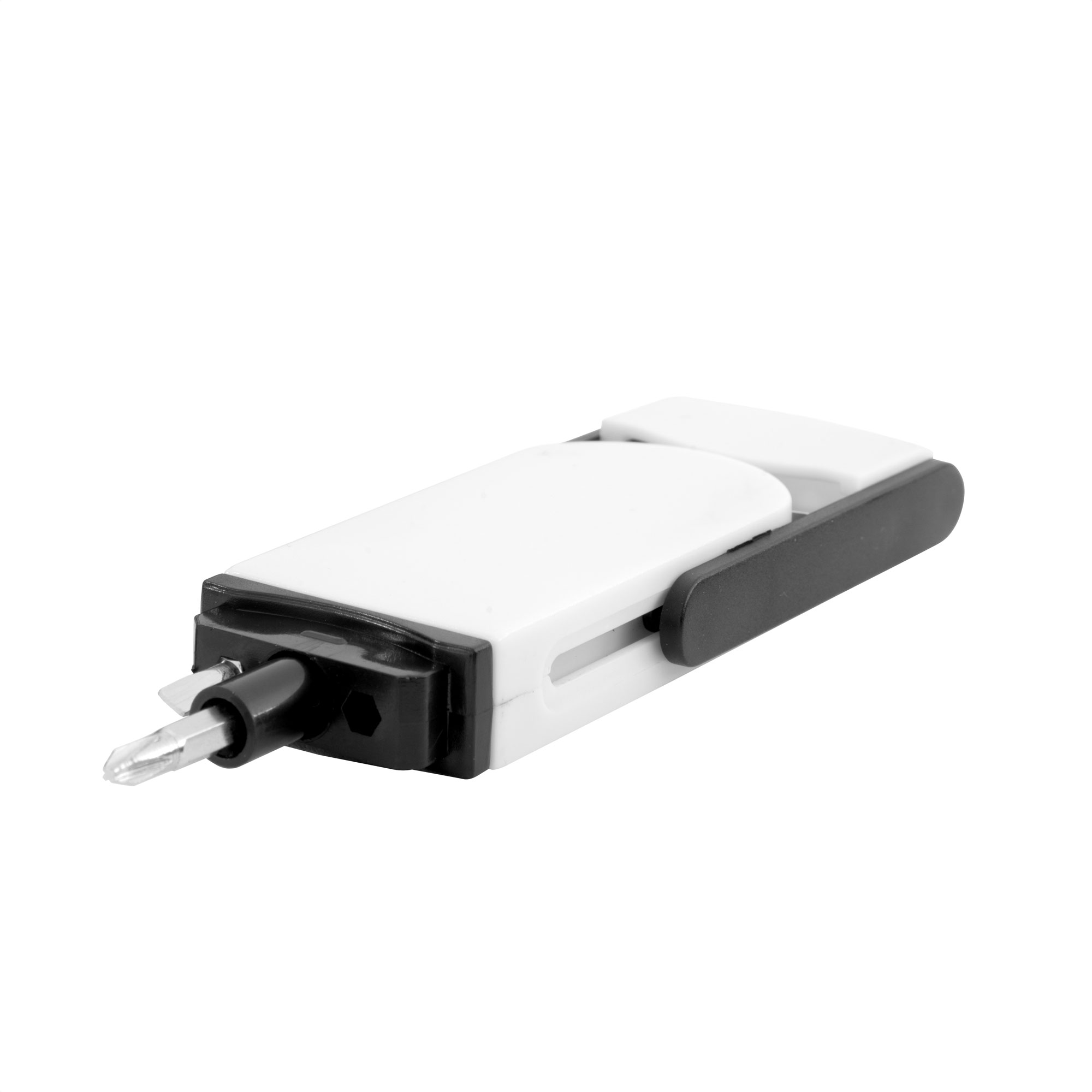 Todo en uno, siempre a manoSet de destornillador con 2 puntas intercambiables ocultas (plana de 3,5 mm y cruz de 2mm.) Ambas en CR-V que las hace más durables y resistentes a la corrosión. Incluye cinta métrica de 1 m. con escalas en centímetros, pulgadas y pies. Cuerpo imantado para poder fijar las puntas. Apertura por deslizamiento.Medidas: 9 x 3,8 x 1,4 cm.