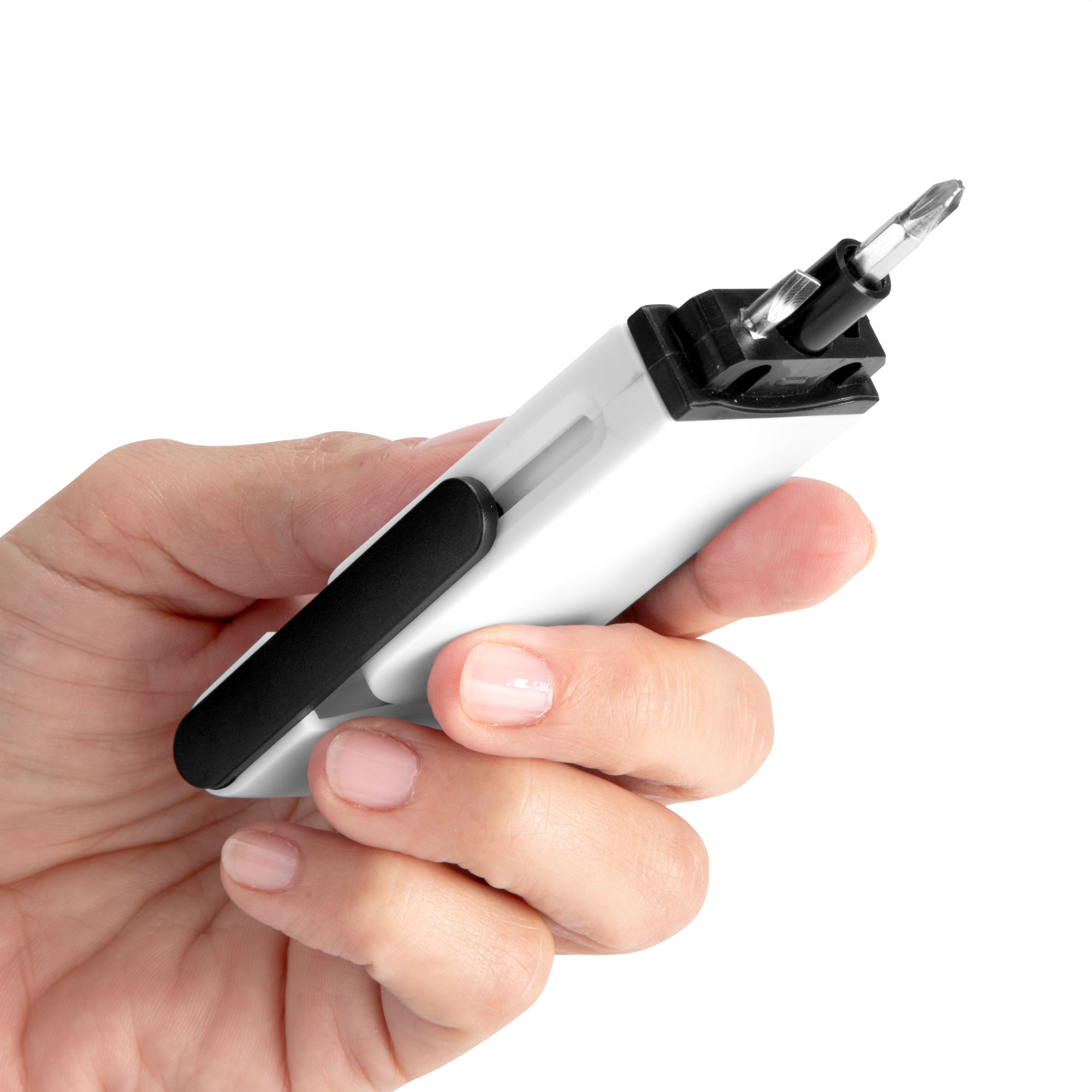 Todo en uno, siempre a manoSet de destornillador con 2 puntas intercambiables ocultas (plana de 3,5 mm y cruz de 2mm.) Ambas en CR-V que las hace más…