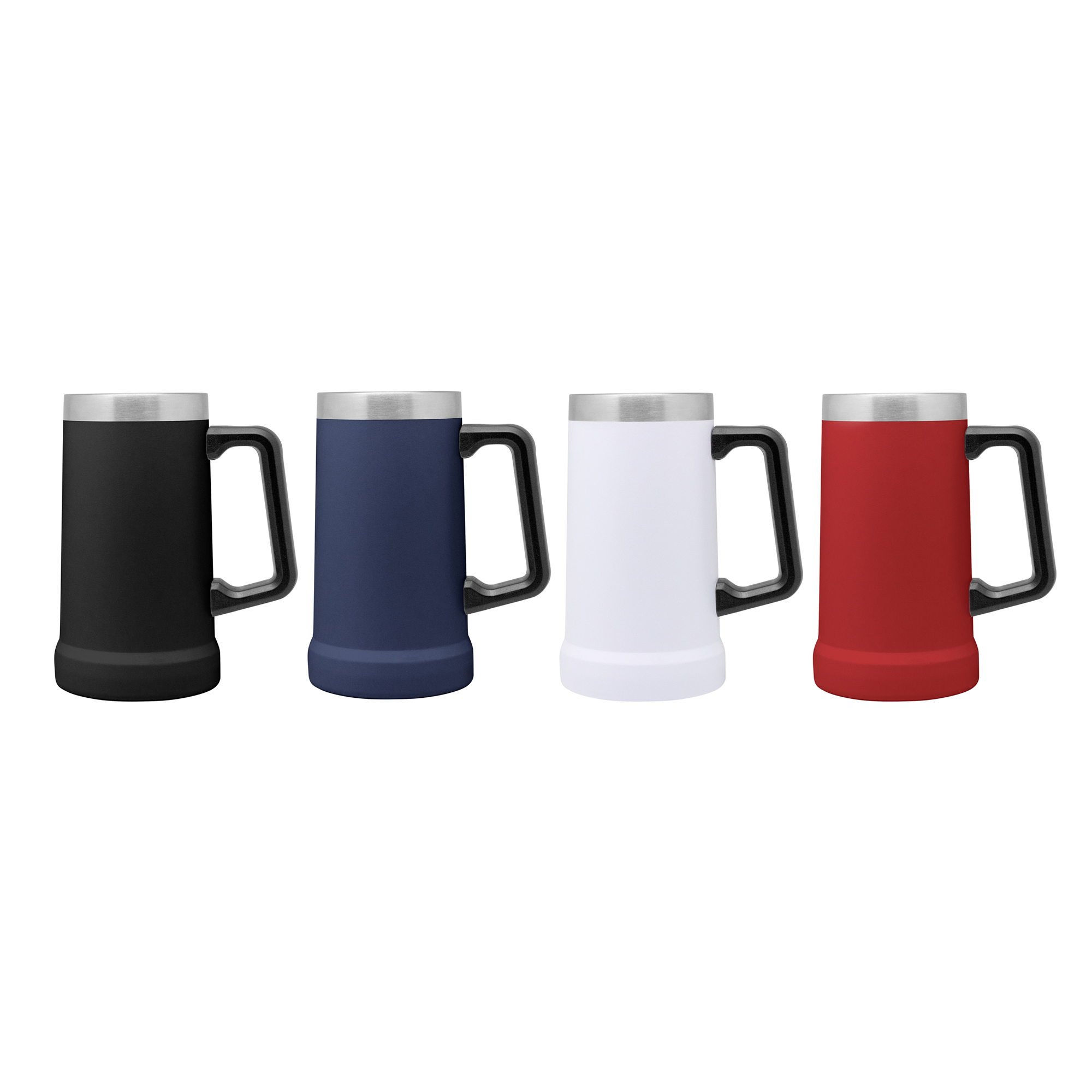 Disfruta tus bebidas frías por más tiempo Jarro cervecero doble pared, sellado al vacío. Interior en acero 304 y exterior en acero 201. Mango Plástico. Pintura Powder coat (pintura más duradera y resistente a la corrosión y el paso del tiempo). Medidas: 17 cm. x Ø 10 cm. (diámetro inferior) y Ø 8,5 cm. (diámetro superior)