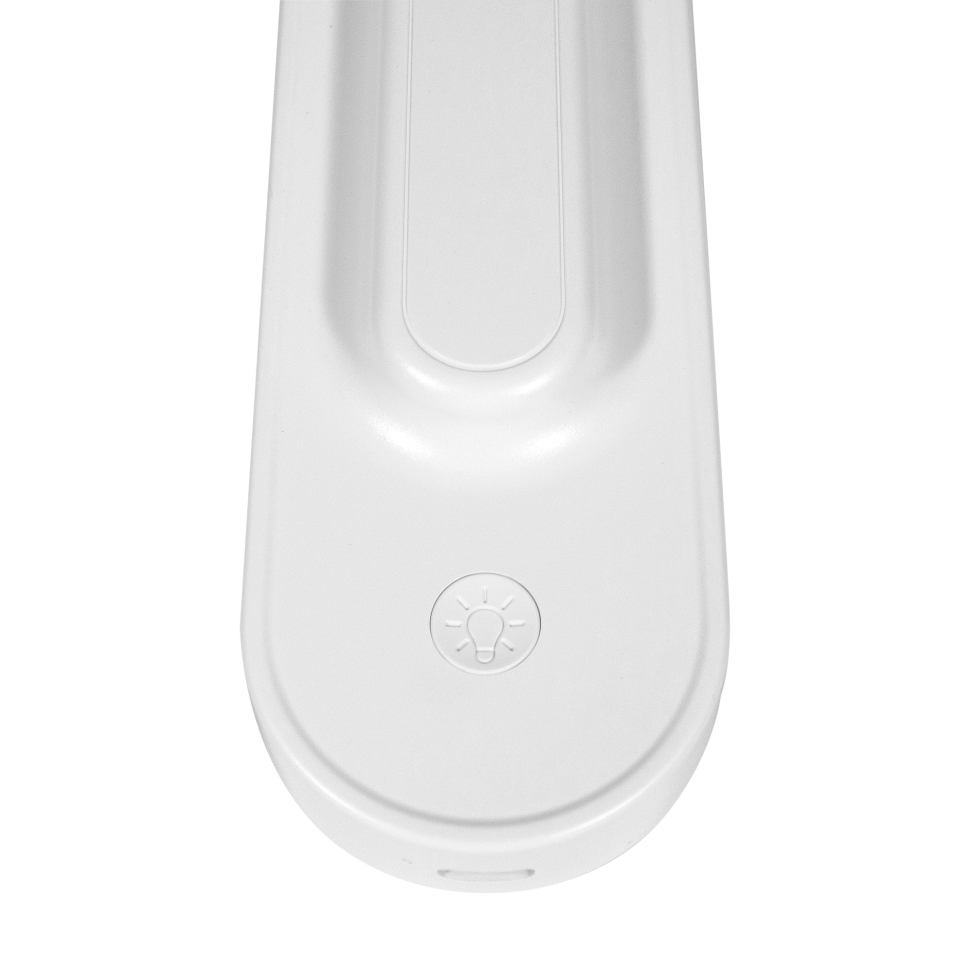 17 x 3,9 x 4,5 cm. Plástico ABS. Lámpara plegable con detalles de color gris en el interior. Botón que cambia la intensidad de la luz al presionarl…