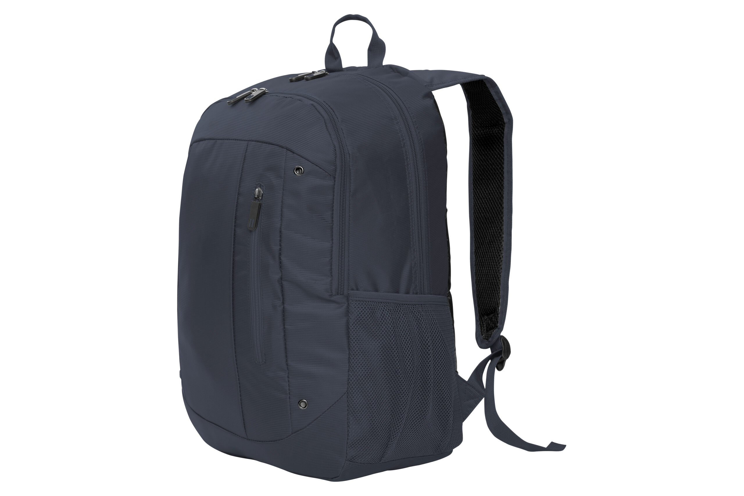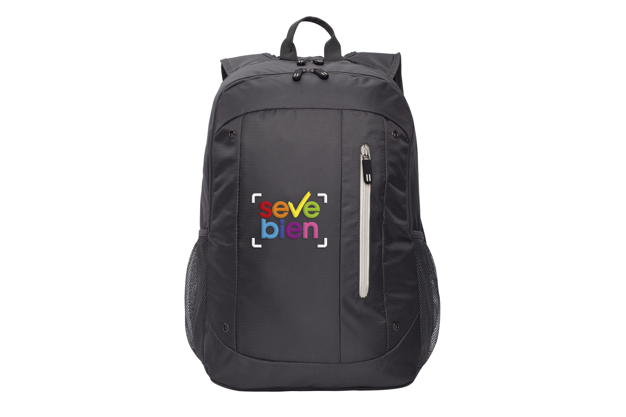 32 x 47 x 17 cm. Capacidad 25 litros aprox. Jacquard Poliéster 420D. Mochila portanotebook. Dos compartimentos con cierre. Compartimento principal con división acolchada porta notebook de hasta 15” con bolsillo y el segundo con tres espacios contenedores. Bolsillo frontal con cierre en color y dos bolsillos de red laterales. Cierres metálicos con tiradores de goma con detalles de color. Correas regulables y espalda acolchadas.
