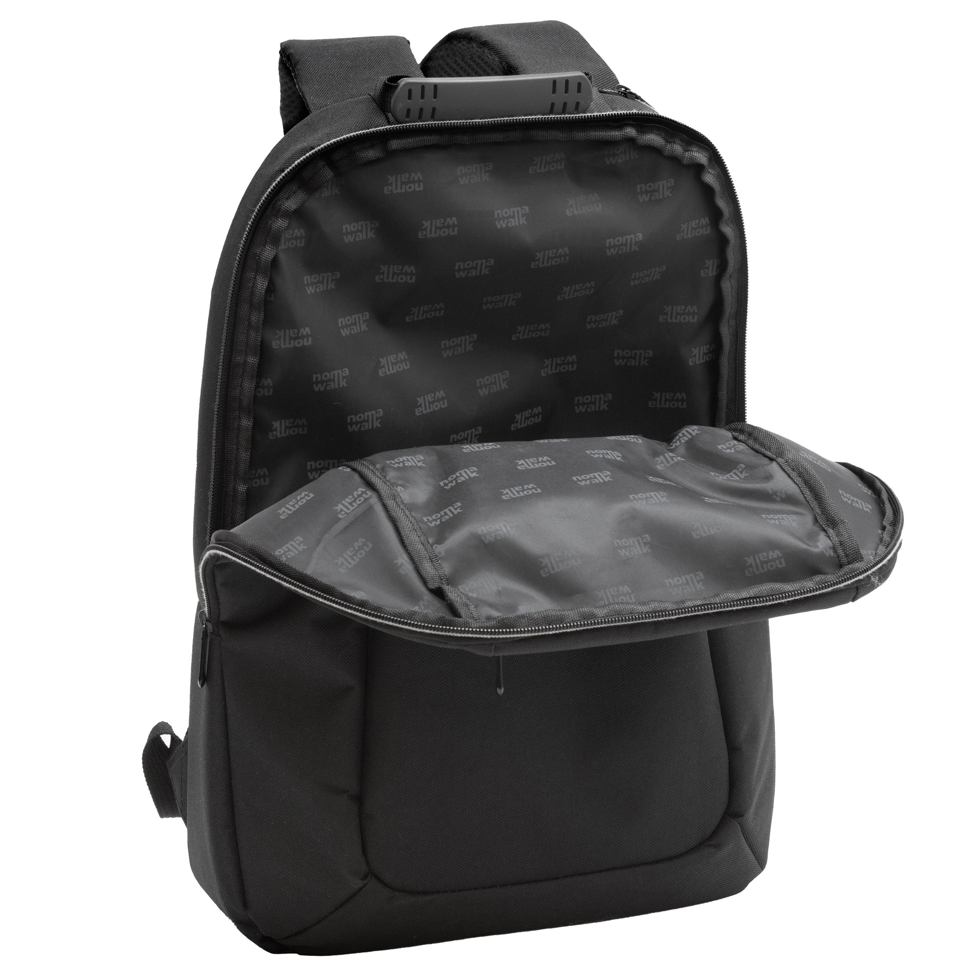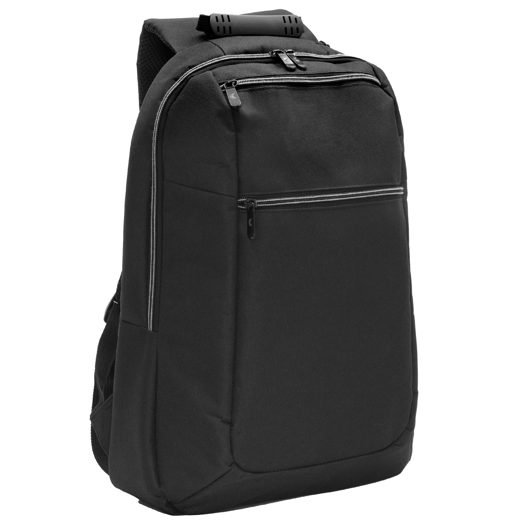 30 x 43 x 12 cm. Capacidad 14 litros. Poliéster 600D, interior poliéster 210D. Mochila portanotebook de 14 pulgadas. Compartimento lateral portanotebook, compartimento principal y 2 bolsillos frontales horizontales. Manija con refuerzo engomado, correas acolchadas, hebillas plásticas y cierres metálicos. Espalda acolchada. Tira para sujetar la mochila en la manija extensible de un equipaje de mano.