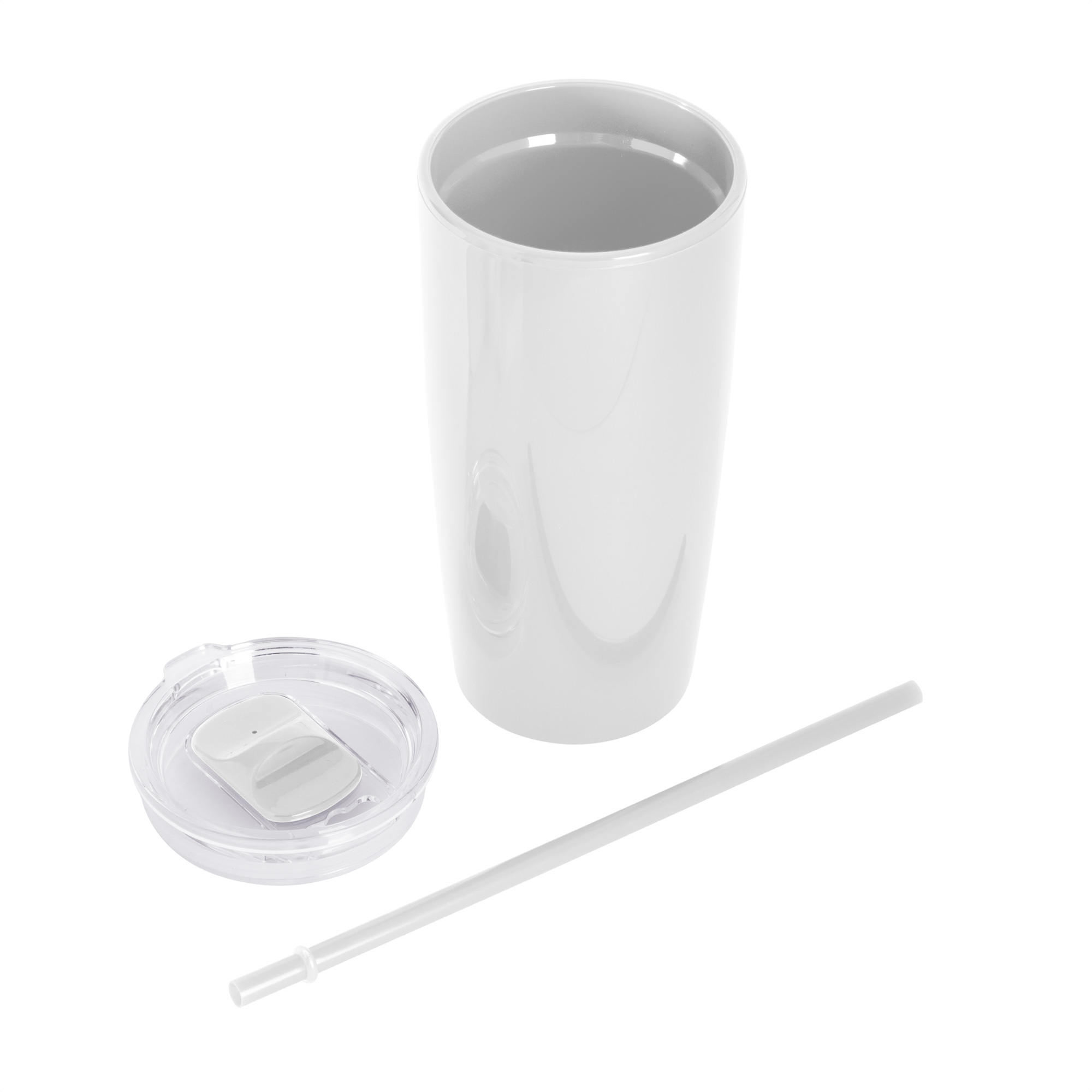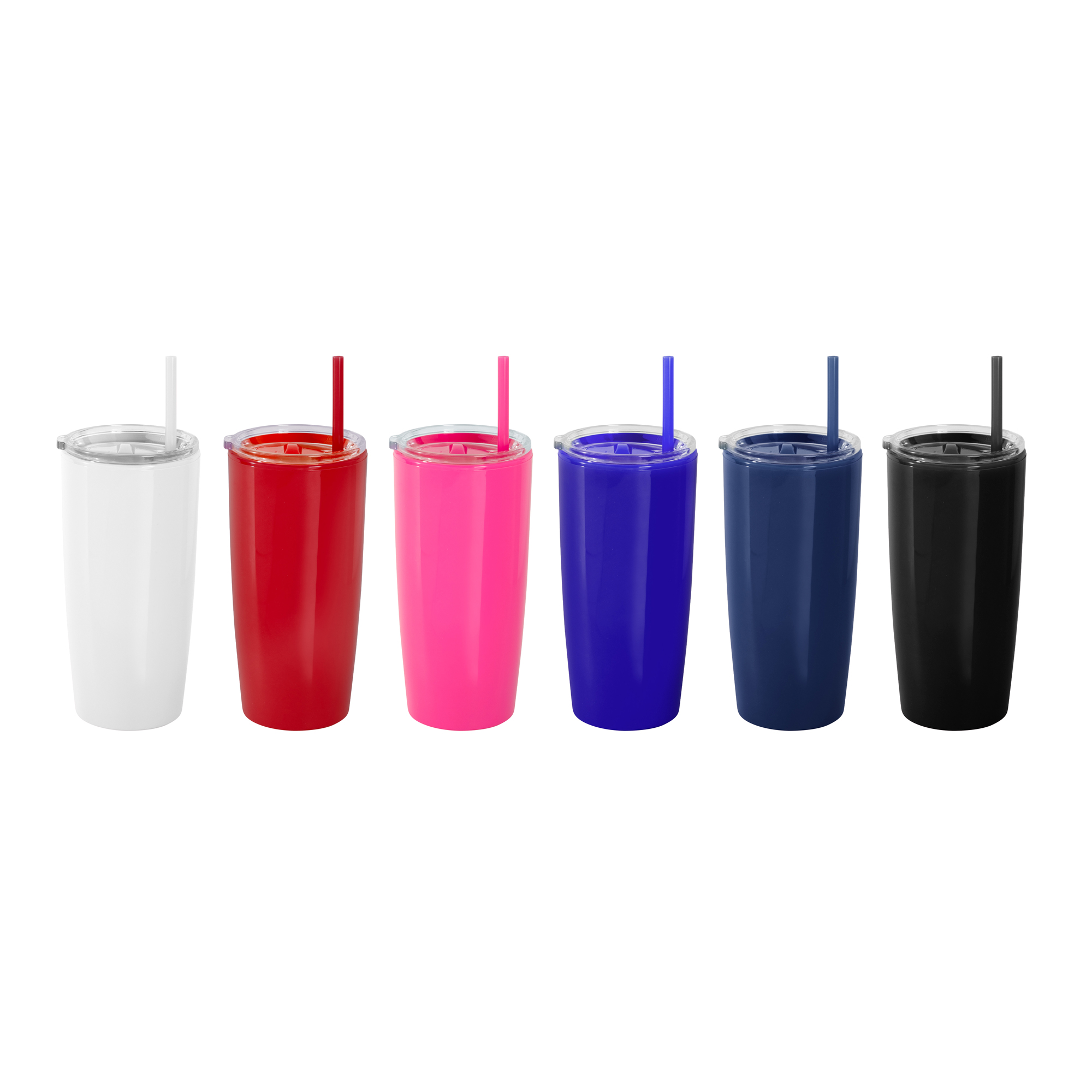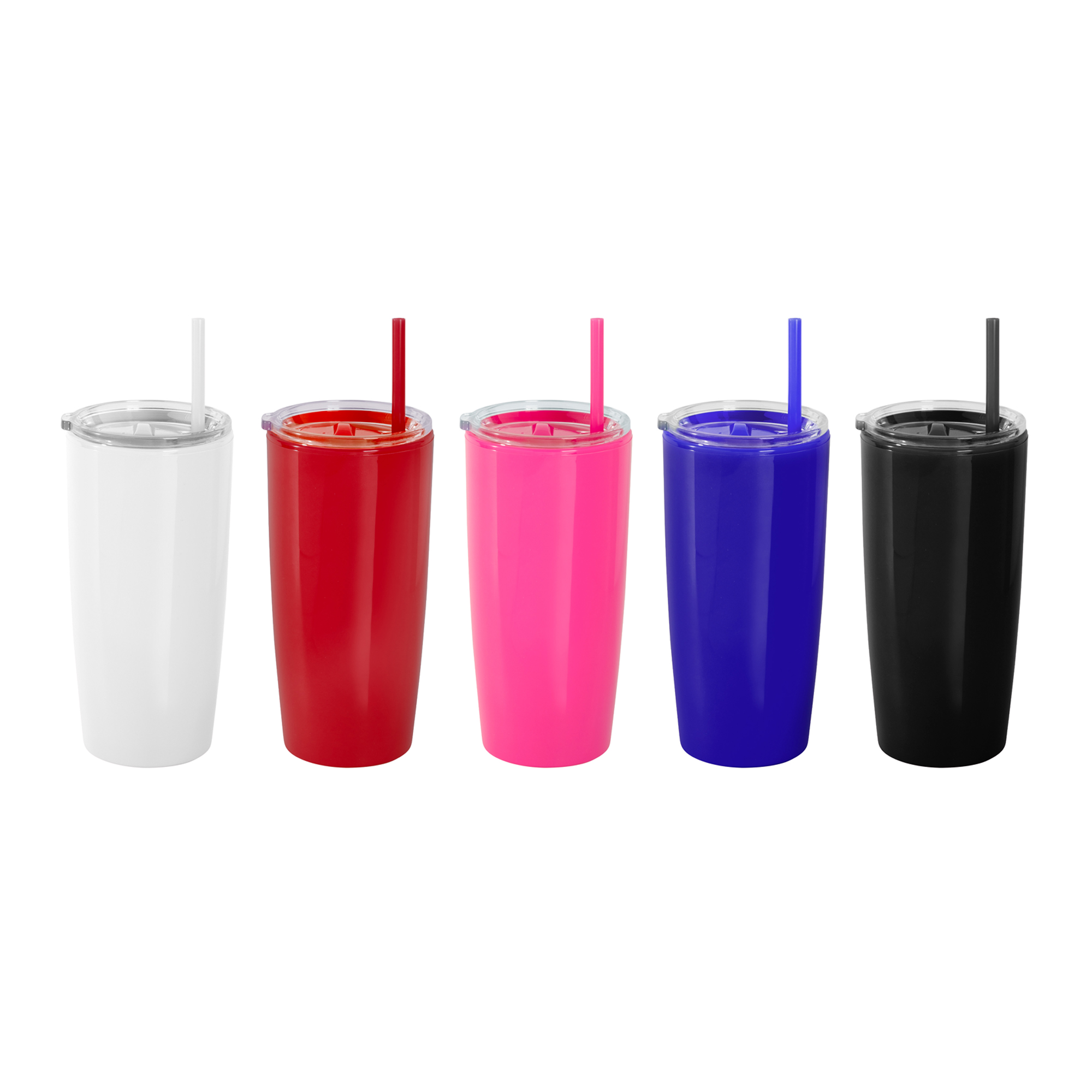 Disfruta de tus bebidas favoritas con comodidad.Mug doble pared con sorbete. Tapa plástica transparente a presión con anillo de silicona. Sorbete de polipropileno y cierre deslizante del mismo color que el cuerpo. Cuerpo con acabado brillante. Medidas: Ø 9 cm x 18,6 cm.
