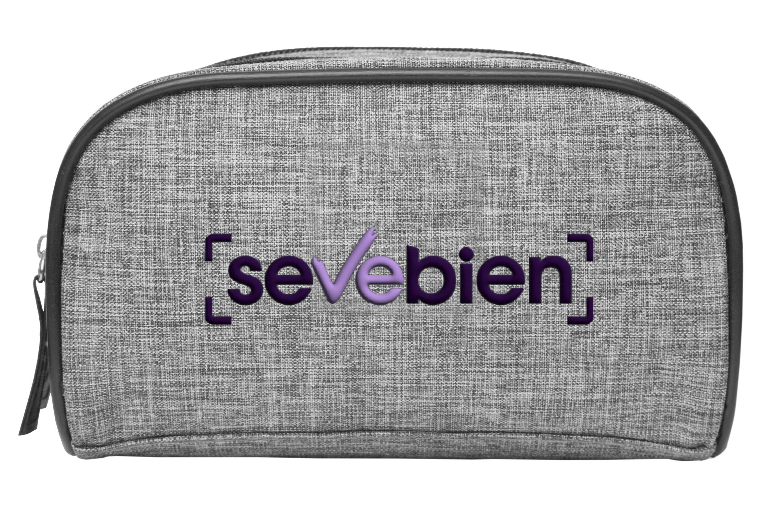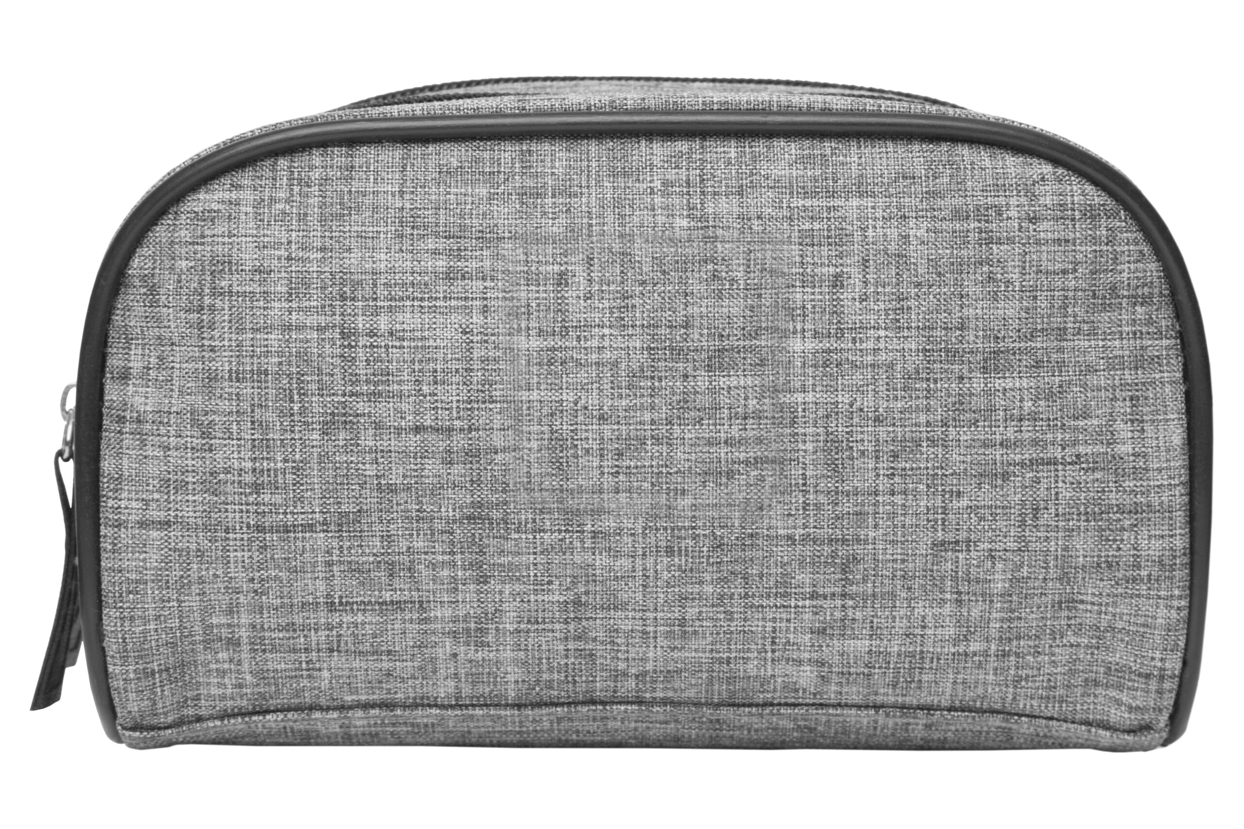 19 x 10 x 9,5 cm. Polyester. Necessaire de dos compartimientos, división movible sujeta con velcro. Detalles en símil cuero. Interior con forro. Tiradores de cierres de símil cuero.