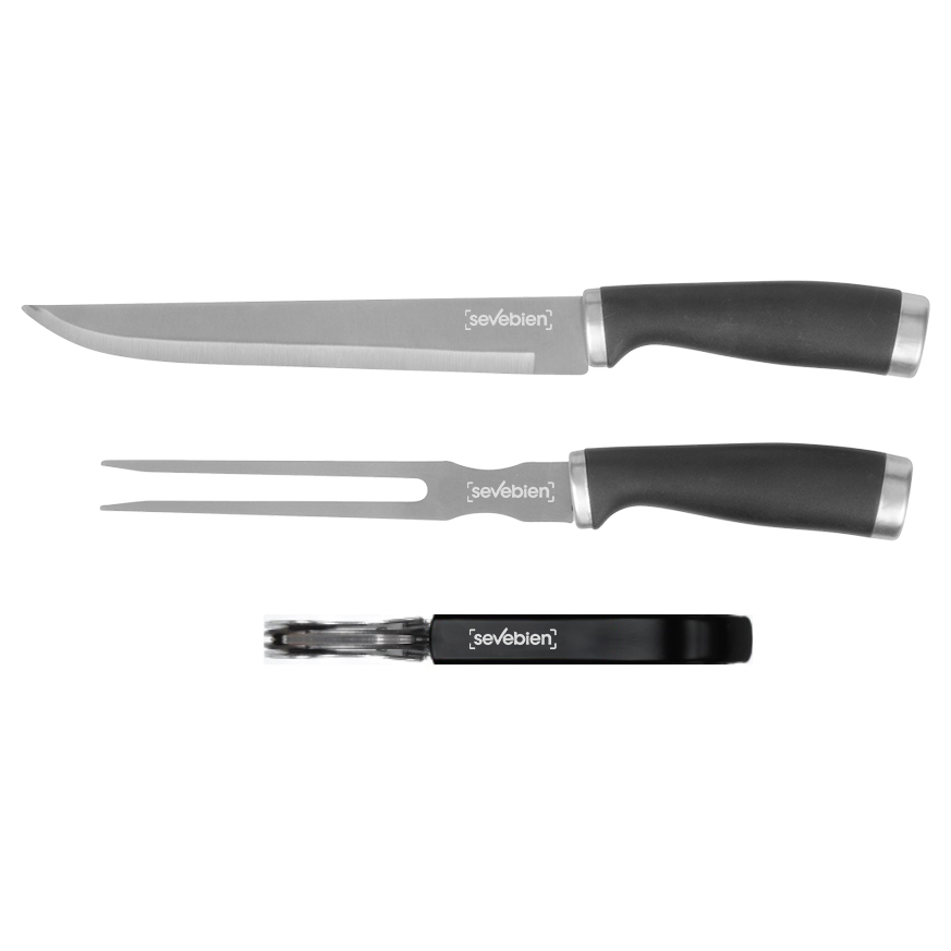 36 x 9,5 x 3 cm. Acero inoxidable y polipropileno + Nylon. Set de asado en estuche con cierre. Contiene: tenedor , asador y cuchilla con mango color…