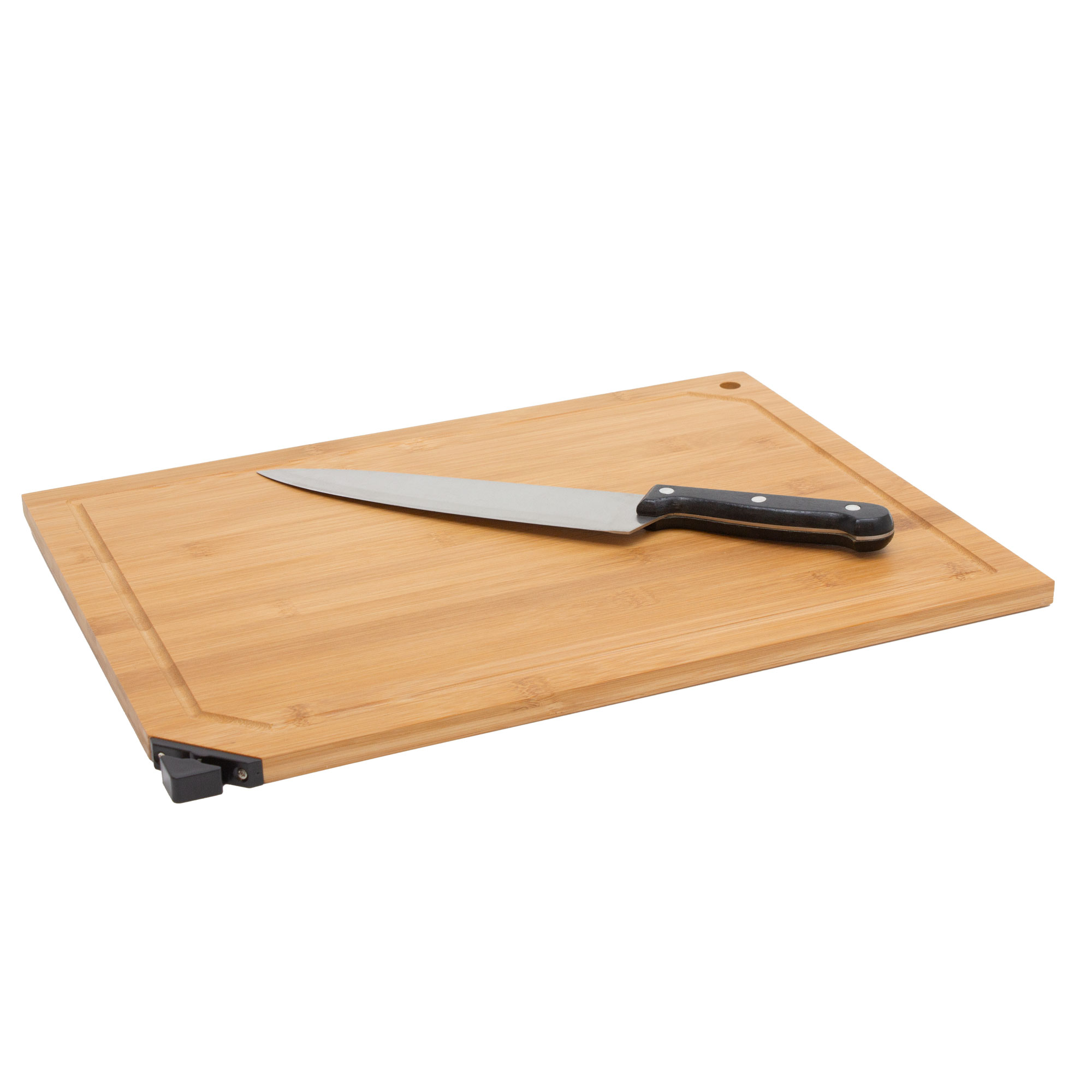 40 x 30 x 1.2 cm. Bambú. Set de corte. Tabla de Bambú con afilador incorporado y cuchillo. Cuchillo de acero inoxidable con mango en madera color ne…