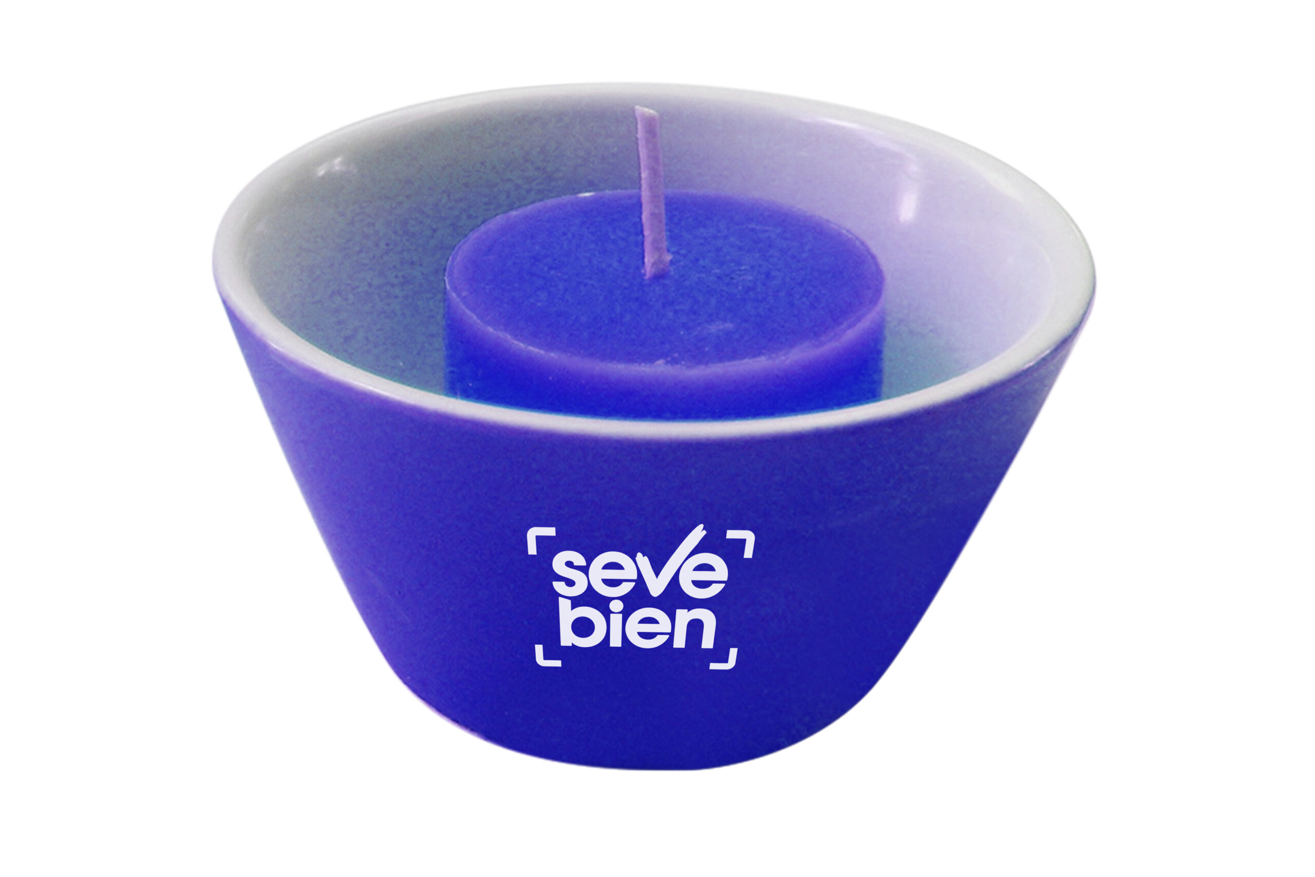 21,8 x 7,5 x 3,5 cm. Set de 6 velas de color y 2 portavelas de cerámica. Presentación en caja transparente de regalo.
