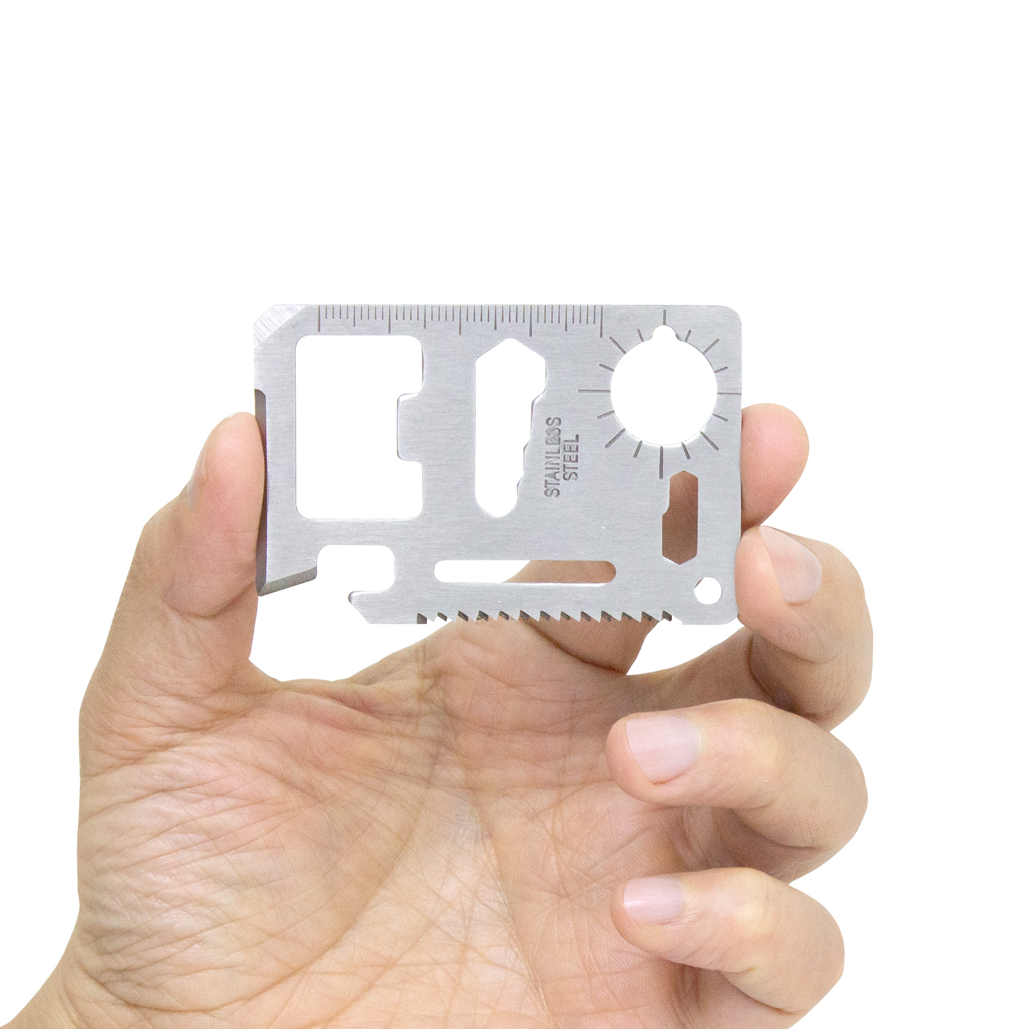 Prepárate para cualquier situación.Tarjeta multiherramienta de supervivencia portátil. Concentra 11 funciones en 1: abrelatas, cuchillo, destornill…